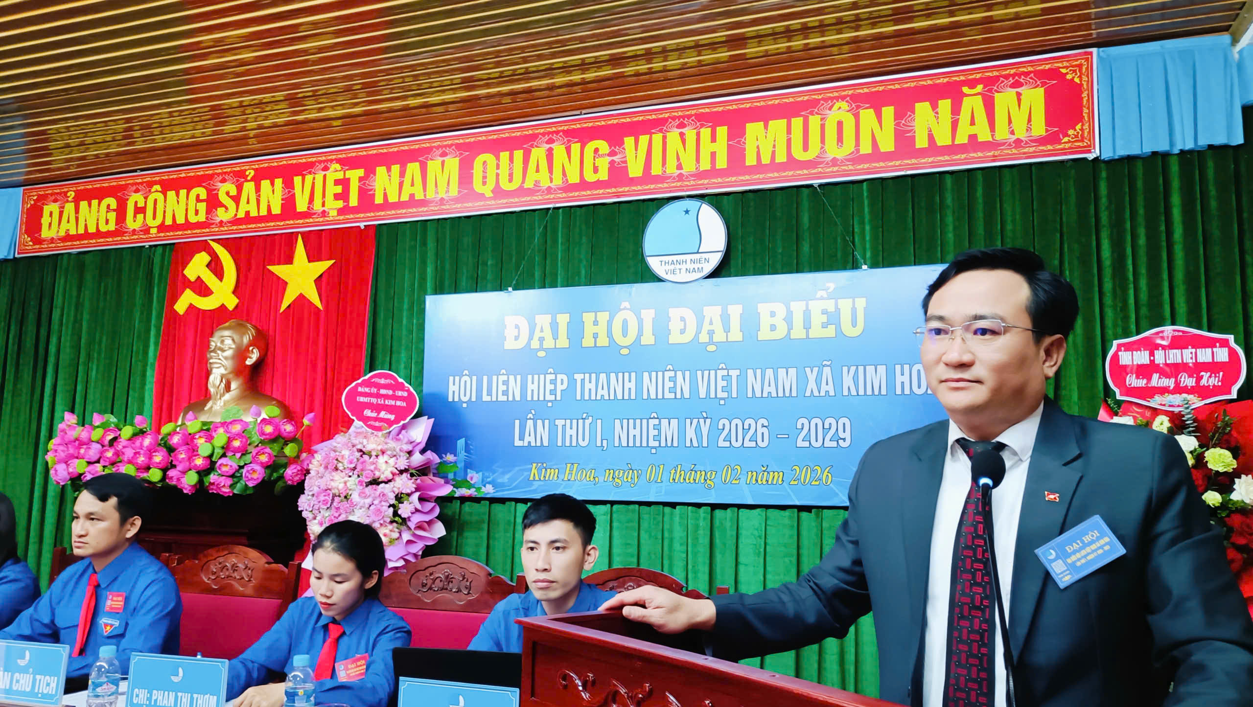 Phát biểu chỉ đạo tại Đại hội, đồng chí Đinh Lương Hào - Phó Bí thư thường trực Đảng ủy biểu dương và bày tỏ sự tin tưởng vào thế hệ thanh niên địa phương trong giai đoạn phát triển mới. Đồng chí đề nghị Hội LHTN tiếp tục đổi mới nội dung, thu hút, tập hợp thanh niên tham gia tổ chức Hội; phát huy tinh thần yêu nước, khát vọng cống hiến của thanh niên, chủ động học tập, rèn luyện, lao động sáng tạo; đi đầu trong chuyển đổi số, tích cực tham gia các mô hình chuyển đổi số cộng đồng, hỗ trợ người dân tiếp cận dịch vụ số; thúc đẩy phong trào đổi mới sáng tạo, khởi nghiệp gắn với công nghệ số; tổ chức Hội thực sự trở thành điểm tựa đoàn kết, tập hợp thanh niên, đồng hành cùng tuổi trẻ trong lập thân, lập nghiệp, góp phần xây dựng xã Kim Hoa phát triển toàn diện, văn minh, bền vững.