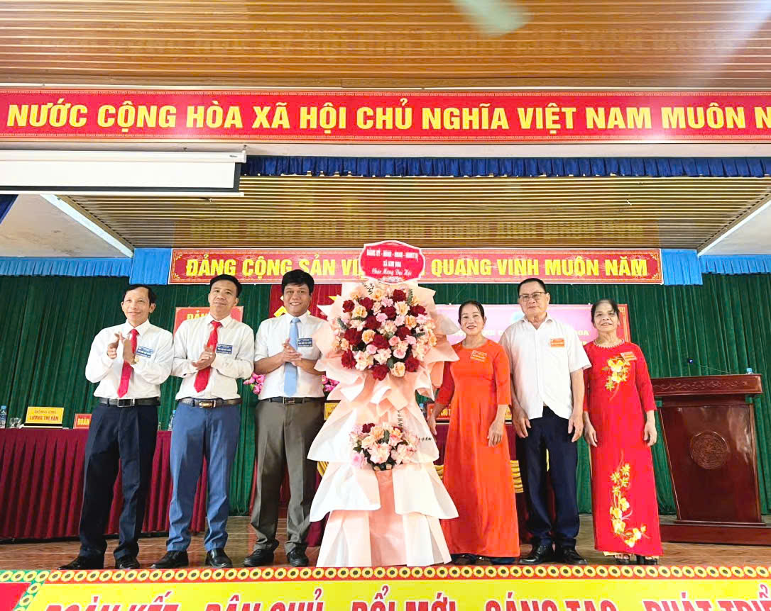 Các đồng chí lãnh đạo xã Kim Hoa tặng hoa chúc mừng đại hội