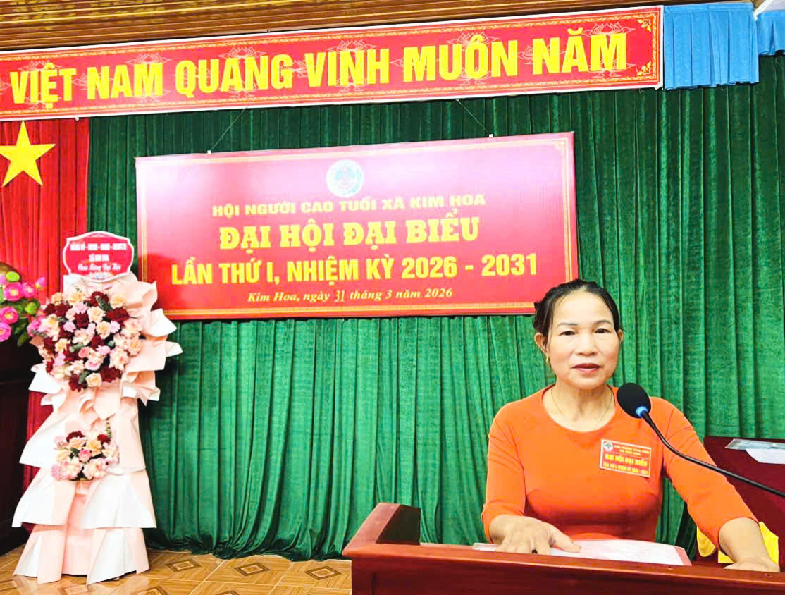 Bà Trần Thị Xuân Hương - Chủ tịch Hội NCT xã Kim Hoa báo cáo tổng kết nhiệm kỳ 2021 - 2026