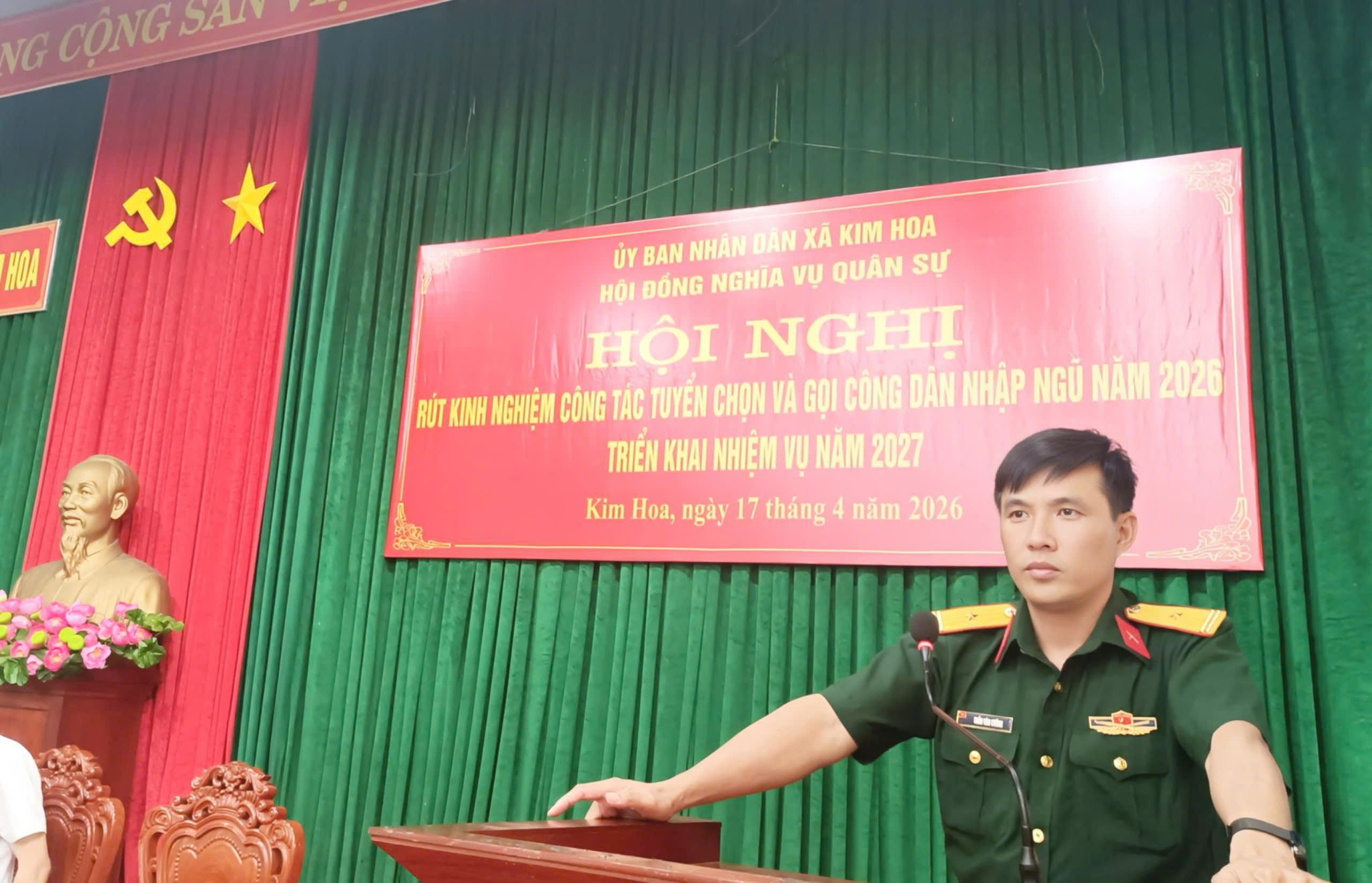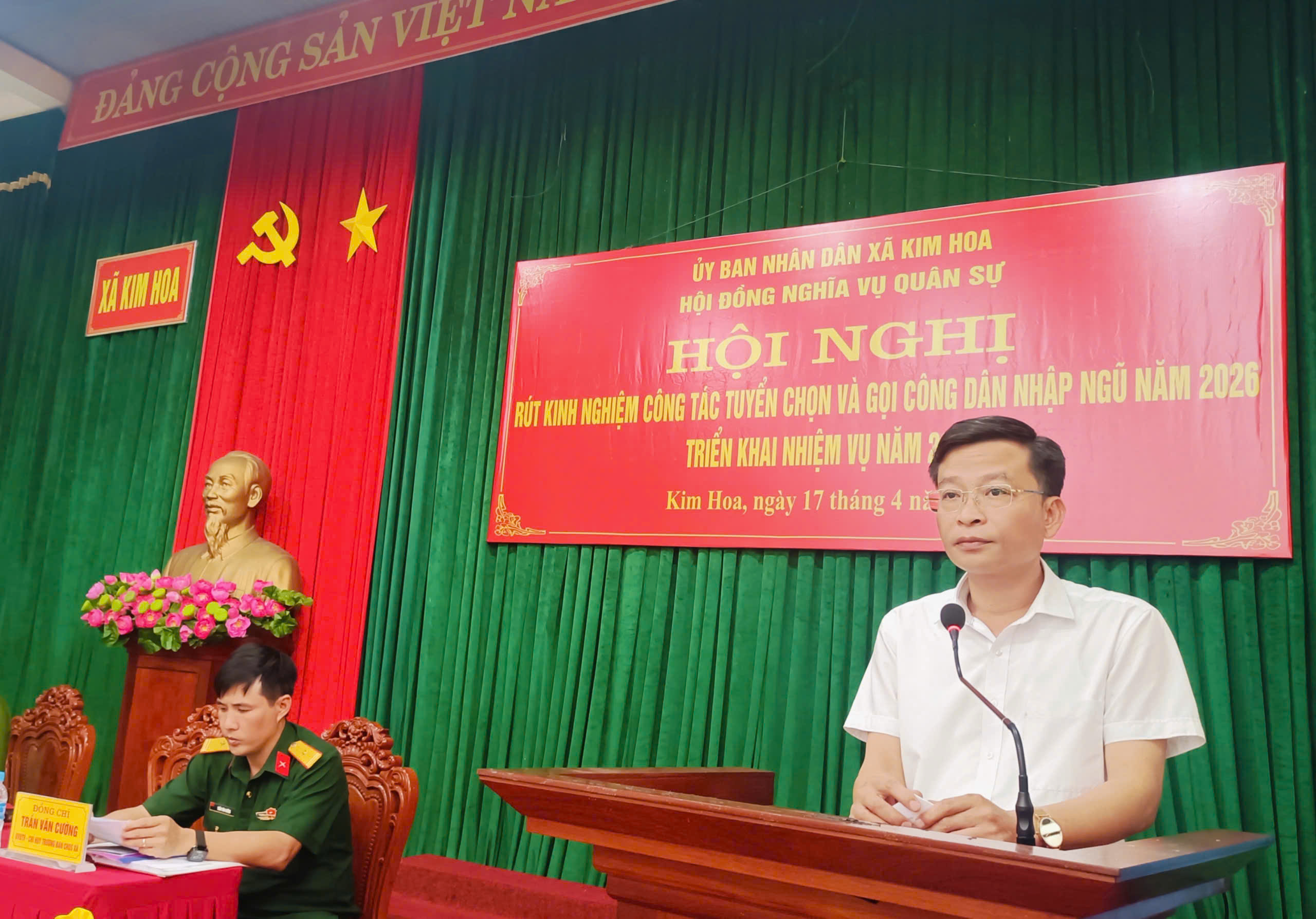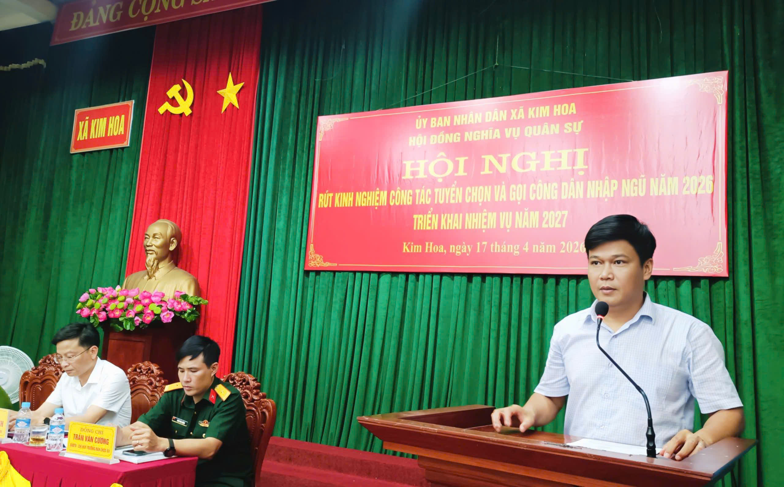 Công tác tuyển quân năm 2026 của xã Kim Hoa được triển khai đồng bộ, bài bản, chặt chẽ “tròn khâu” từ công tác rà soát nguồn, sơ tuyển sức khỏe, phối hợp khám tuyển sức khỏe, đến giao quân. Công tác tuyên truyền khá phong phú, đa dạng dưới nhiều hình thức, góp phần nâng cao nhận thức, trách nhiệm của Nhân dân và công dân trong độ tuổi thực hiện nghĩa vụ quân sự, nghĩa vụ Công an nhân dân.
