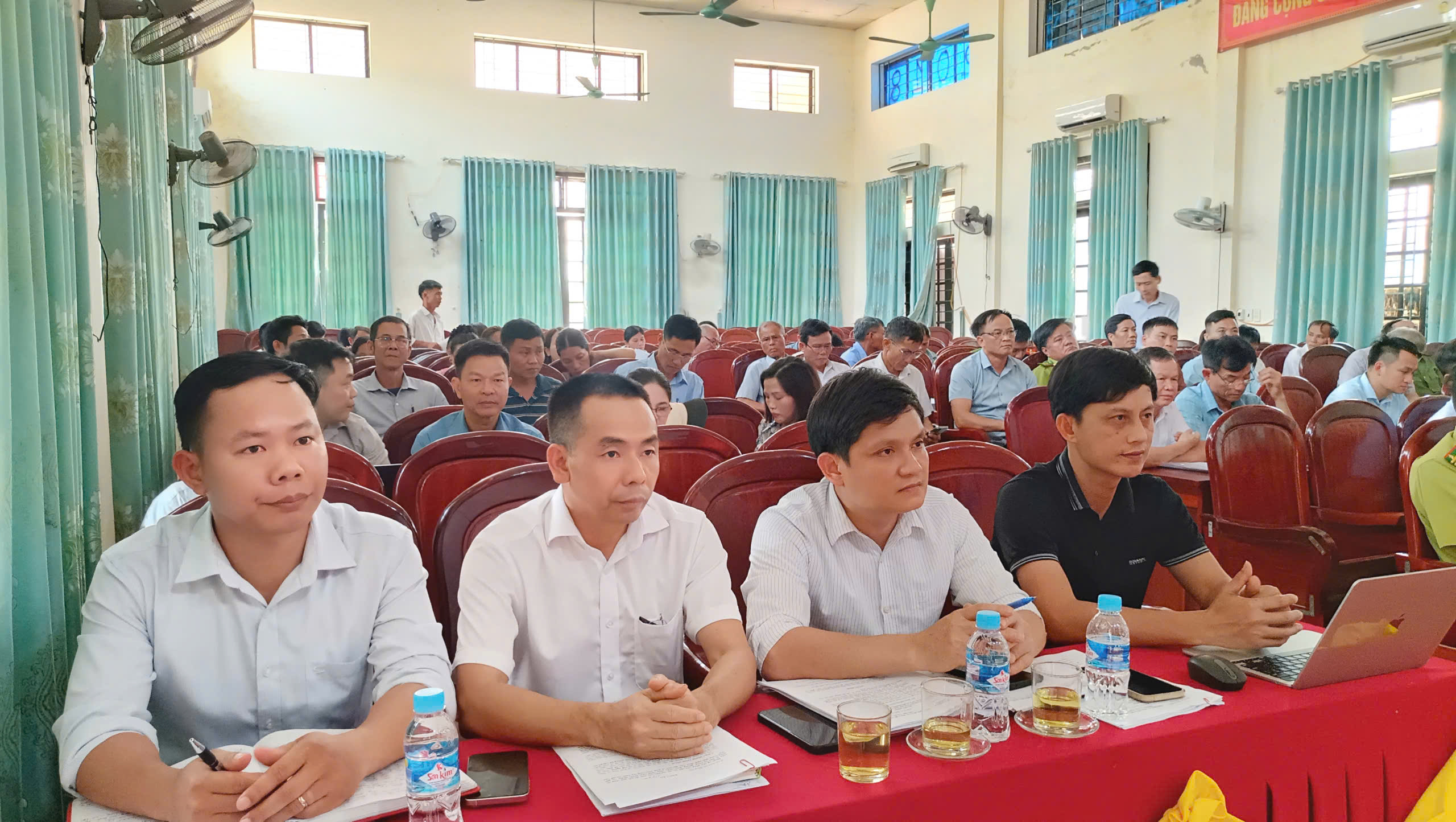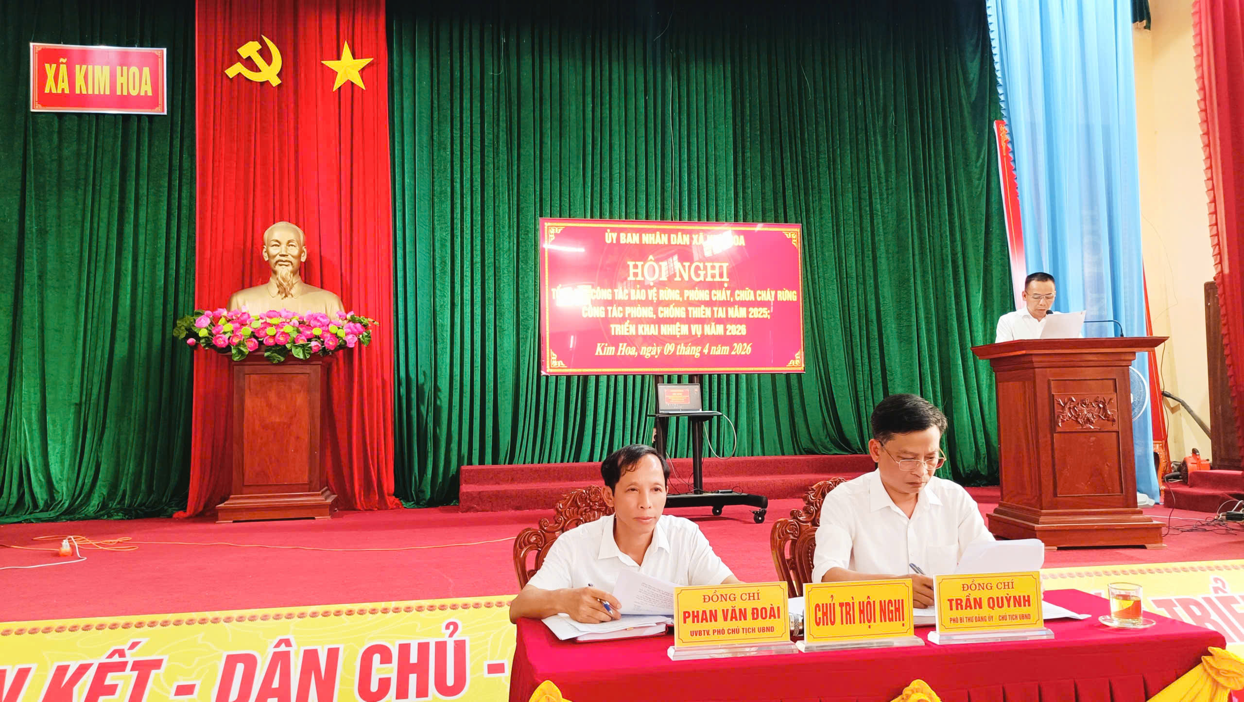 Đồng chí Trần Quỳnh, Chủ tịch UBND xã và đồng chí Phan Văn Đoài, PCT UBND xã chủ trì hội nghị.