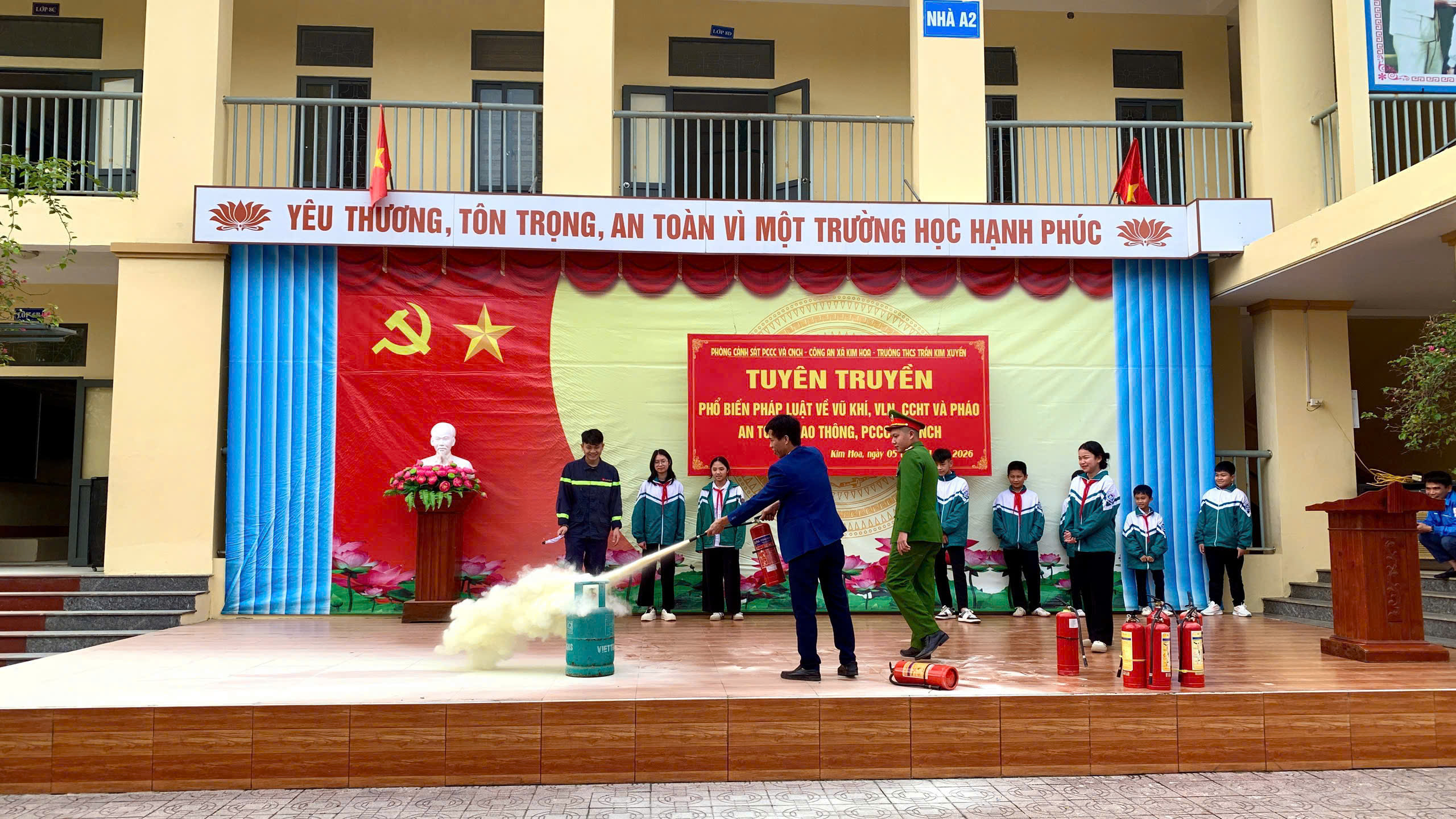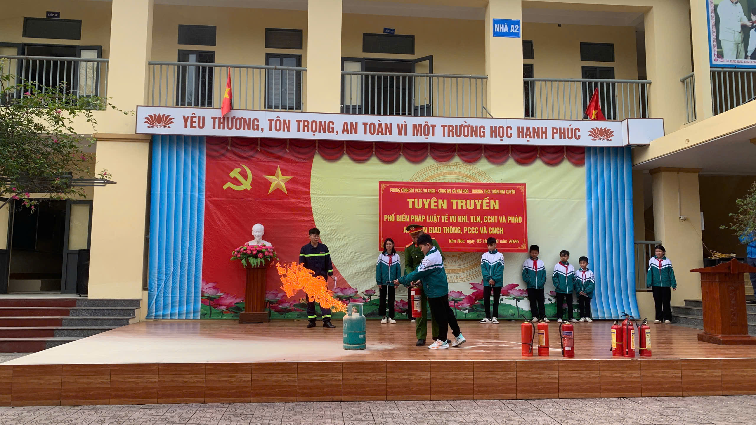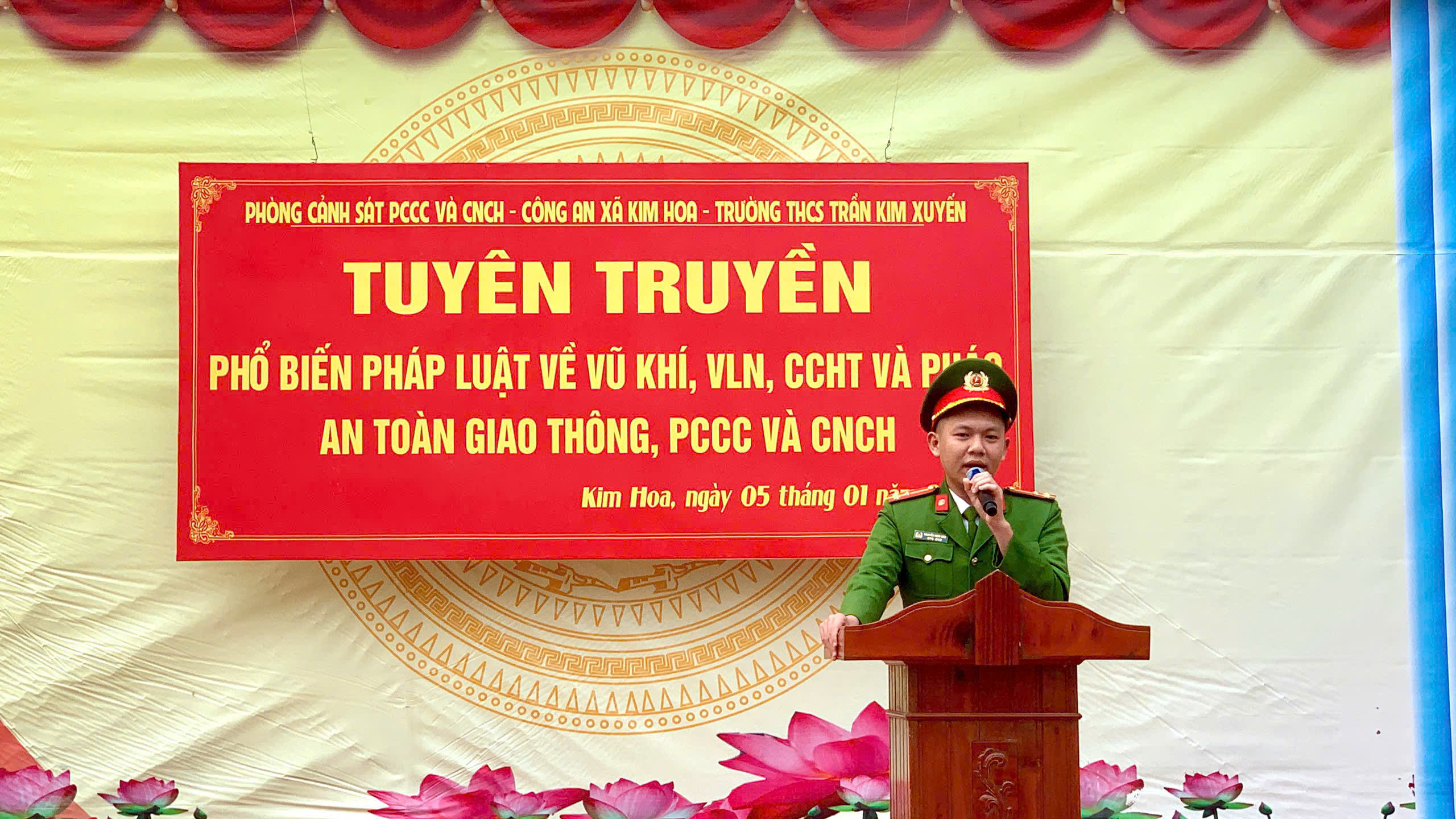Kết thúc buổi tuyên truyền, đại diện cán bộ, giáo viên và học sinh Trường THCS Trần Kim Xuyến đã ký cam kết chấp hành nghiêm các quy định của pháp luật, góp phần đảm bảo an ninh trật tự trên địa bàn xã Kim Hoa trong dịp Tết Nguyên đán Bính Ngọ 2026.