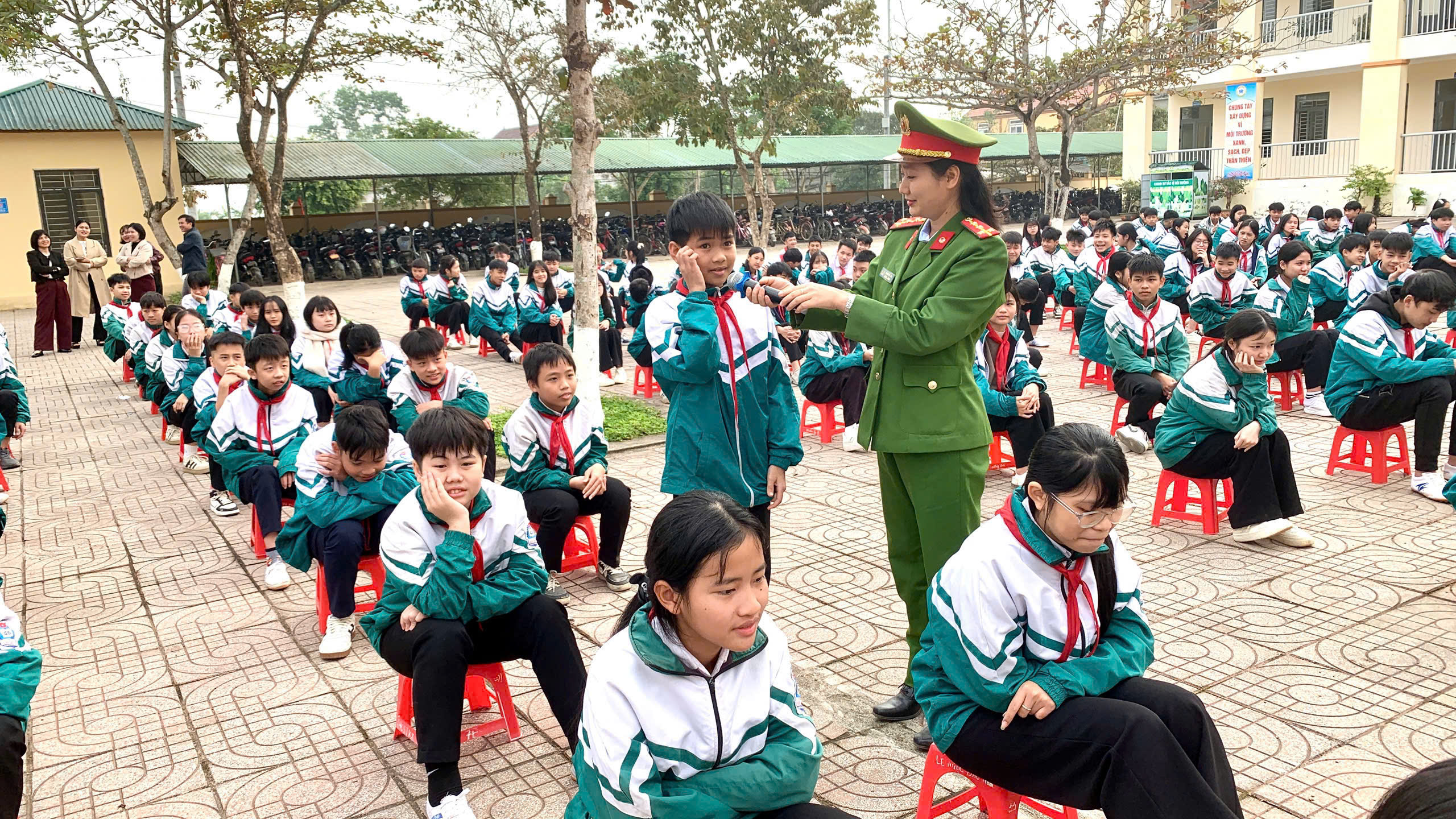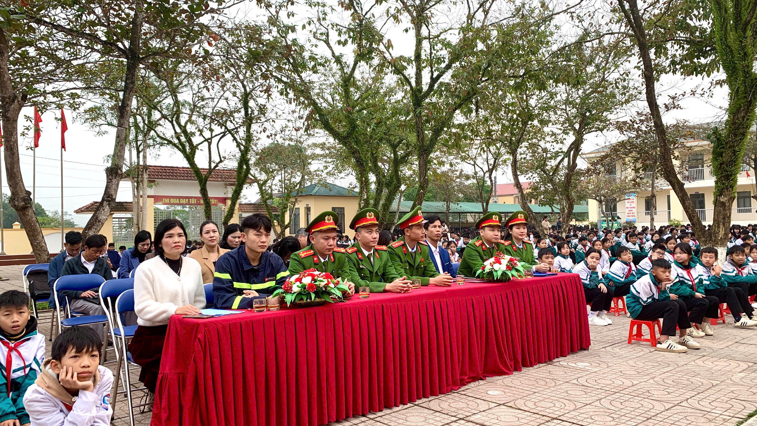 Tại chương trình, lực lượng Công an đã tuyên truyền, phổ biến các quy định của pháp luật về bảo đảm an ninh, trật tự; quản lý, sử dụng vũ khí, vật liệu nổ, công cụ hỗ trợ và phòng, chống các hành vi vi phạm liên quan đến pháo nổ; hướng dẫn kiến thức, kỹ năng phòng cháy, chữa cháy và cứu nạn, cứu hộ; tuyên truyền các quy định về trật tự, an toàn giao thông, đồng thời cảnh báo, nhận diện các phương thức, thủ đoạn lừa đảo qua mạng nhằm nâng cao ý thức chấp hành pháp luật cho cán bộ, giáo viên và học sinh nhà trường.